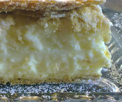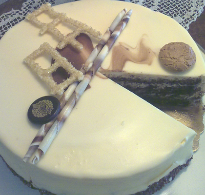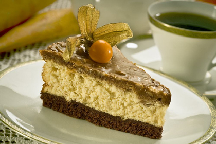 Hervorragende Komposition aus Schmand, Karamell und Mascarpone verbunden mit Schlagsahne. Die Tortenbasis bildet ein Biskuit mit Walnüssen. Alle Biskuitschichten sind zart mit Spiritus-Punsch und ein bisschen Rum sowie Vanille getröpfelt