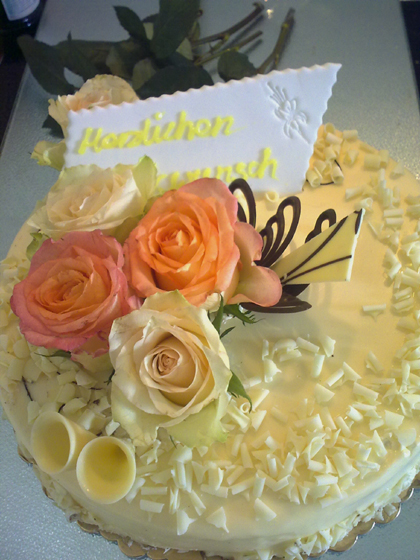Torte mit Geschmack von weißer Schokolade unter Zugabe von besonders